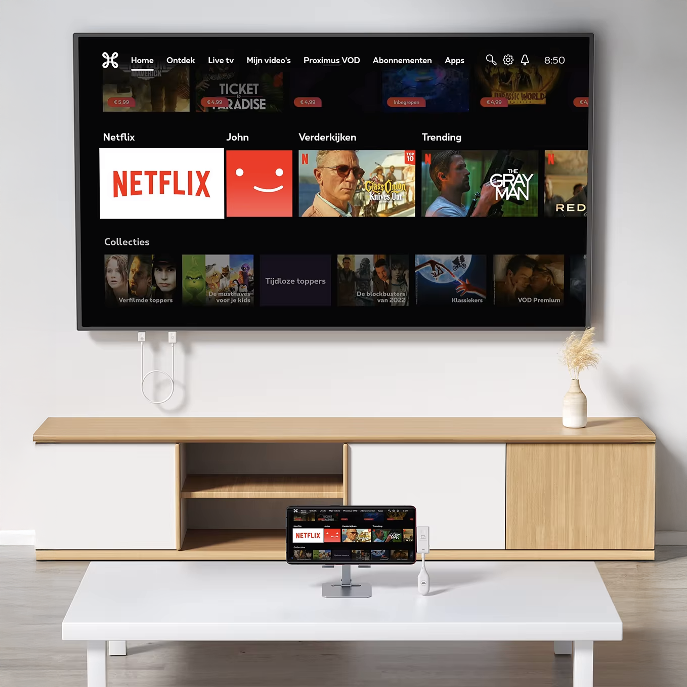 En soirée, vous passez votre film ou vos jeux sur le grand écran sans déplacer votre appareil.