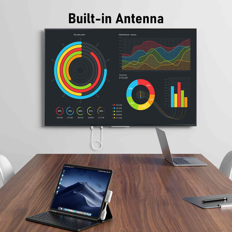 🔌 Connexion sans fil directe : projetez votre écran (ordinateur, console, appareil mobile) sur un téléviseur ou projecteur sans câble HDMI.