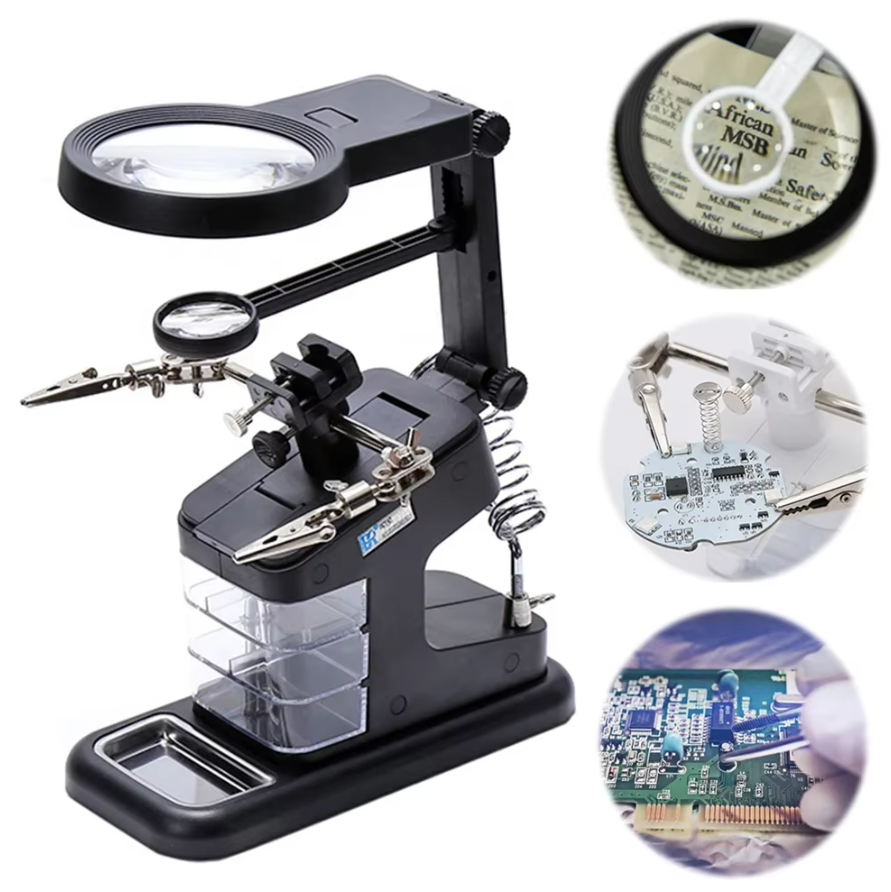 Découvrez notre fer à souder conçu pour offrir une expérience de travail optimale, que vous soyez un professionnel ou un bricoleur passionné. Ce modèle compact et pratique est équipé de tout ce dont vous avez besoin pour travailler avec précision et efficacité. Grâce à sa loupe éclairée par LED, vous pouvez zoomer sur les moindres détails de vos soudures, assurant une finition nette et parfaite.