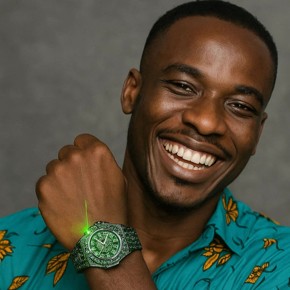 Montre de luxe hip-hop pour homme avec strass verts
