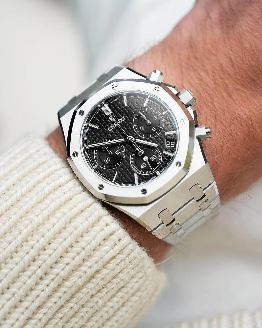 Restez élégant et ponctuel avec notre montre chronographe chic, appréciée par des icônes mondiales comme Zlatan Ibrahimović