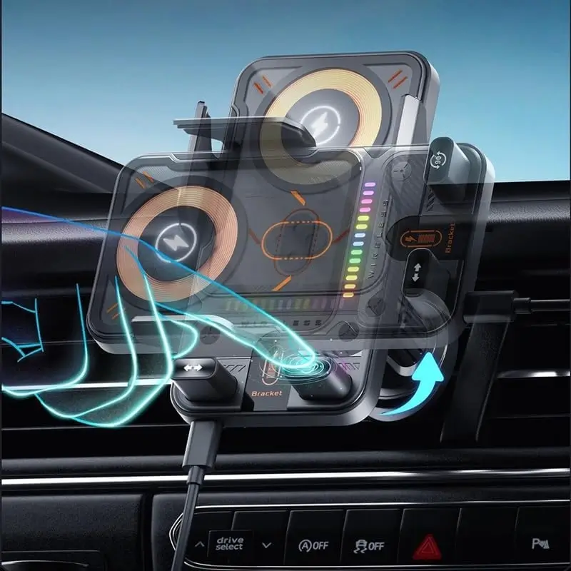 Améliorez votre expérience de conduite avec ce chargeur sans fil rapide 15W, doté d’un support magnétique pour grille d’aération et d’un capteur intelligent.
