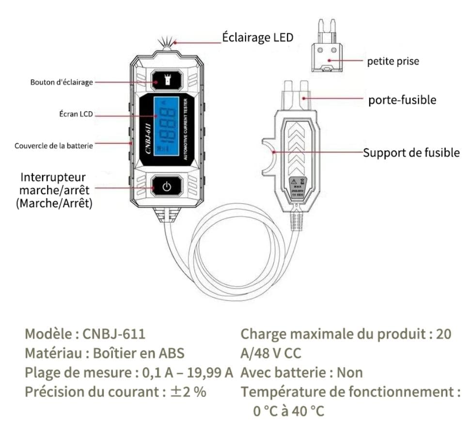 Ce tester de courant haute précision vous transforme en expert en diagnostic de circuits en quelques secondes ! Avec seulement quelques étapes simples de branchement et d'utilisation, vous pouvez rapidement localiser les problèmes potentiels du système électrique de votre véhicule. 🛠️